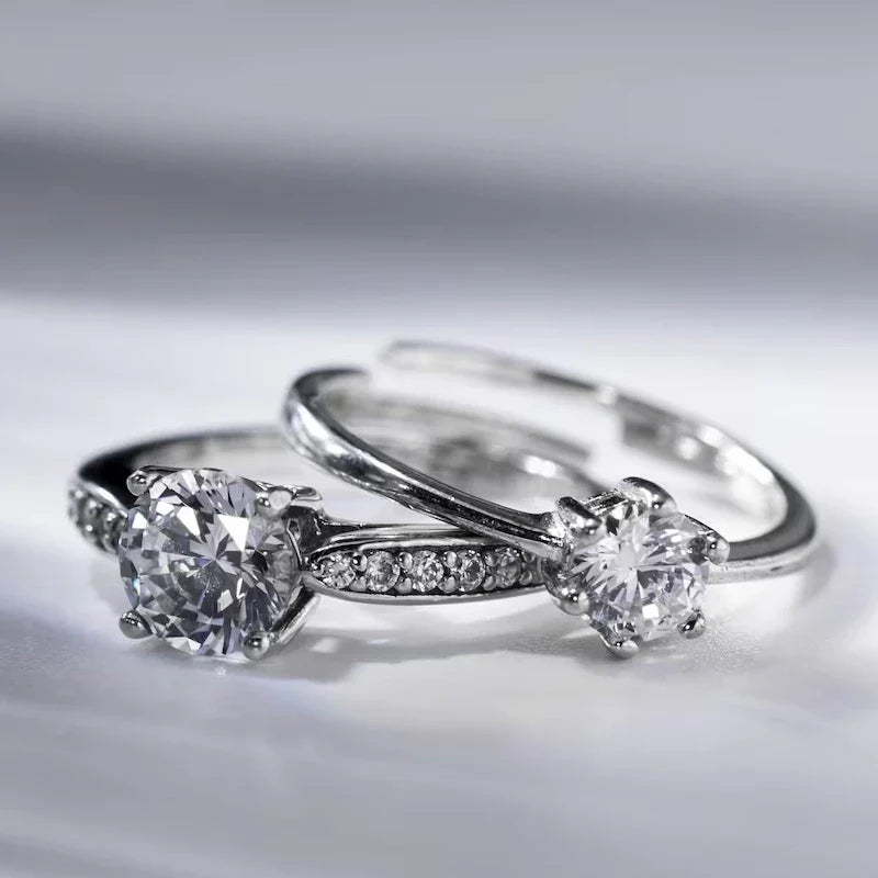 On her finger sparkles a bold diamond cocktail ring, a brilliant cluster of diamonds set in platinum, harmonizing with the refined glamour of her gown. Together, this exquisite diamond suite elevates her bridal presence, blending Victorian luxury with modern finesse.